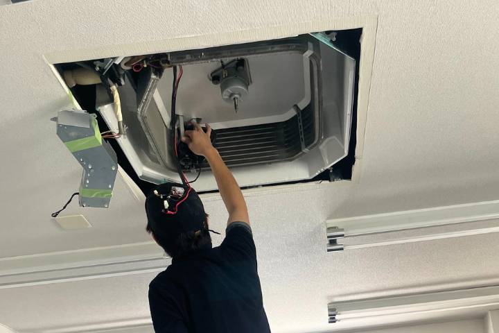 自由が丘にあるフィットネスクラブのエアコン清掃を行いました。